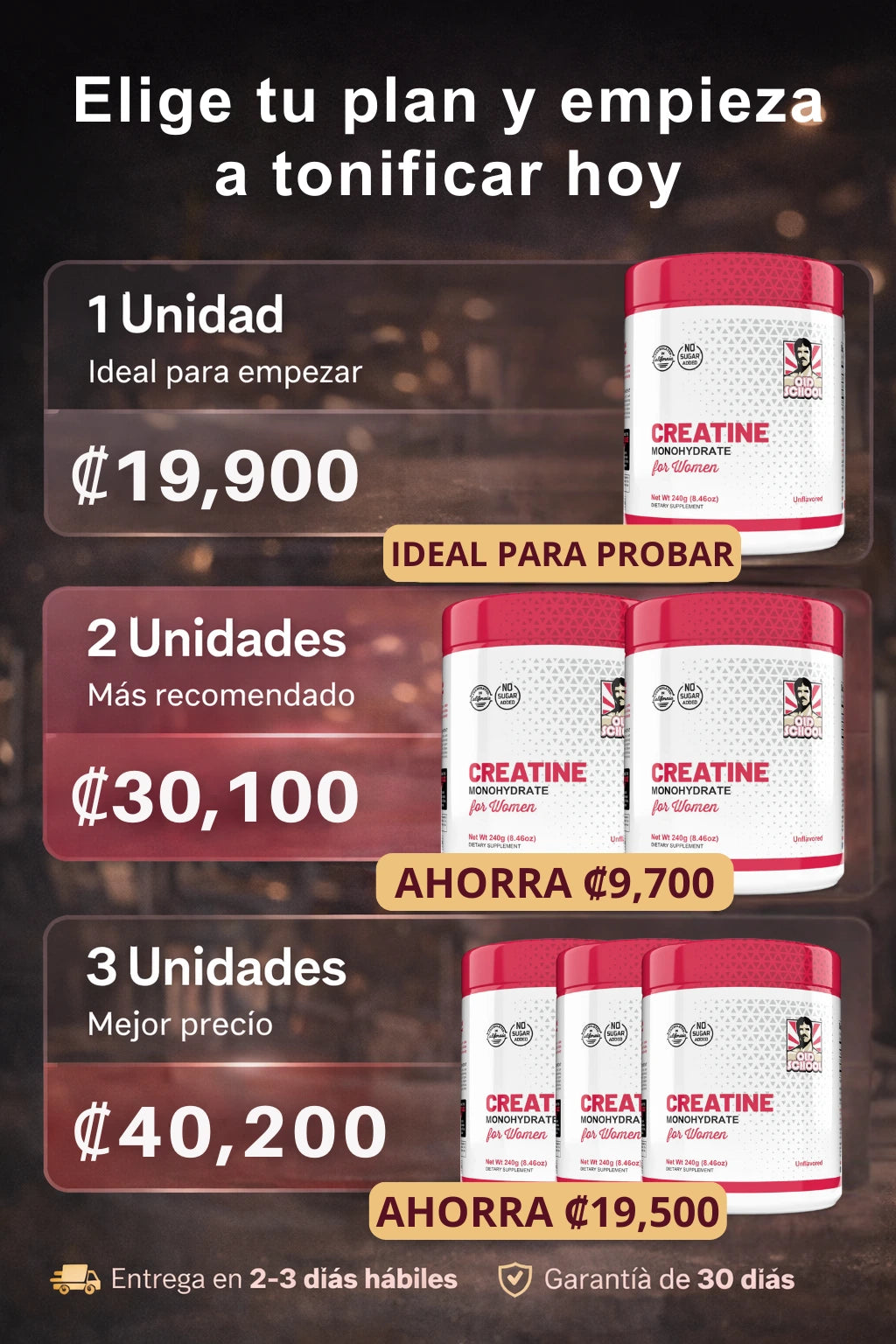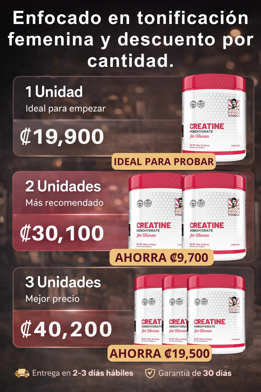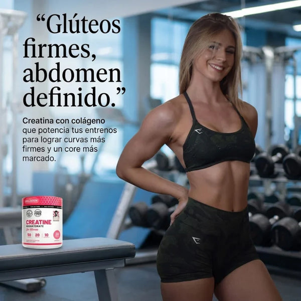 ¡Para nada! Es uno de los mitos más comunes. La creatina ayuda a que tus músculos retengan una pequeña cantidad de agua intracelular, lo que los hace ver más tonificados y firmes, no "hinchados". Además, esta fórmula incluye 2g de colágeno, que ayuda específicamente a la elasticidad de la piel, y 1g de BCAAs para que te recuperes más rápido. Te verás más atlética y con más energía, sin ganar peso graso.