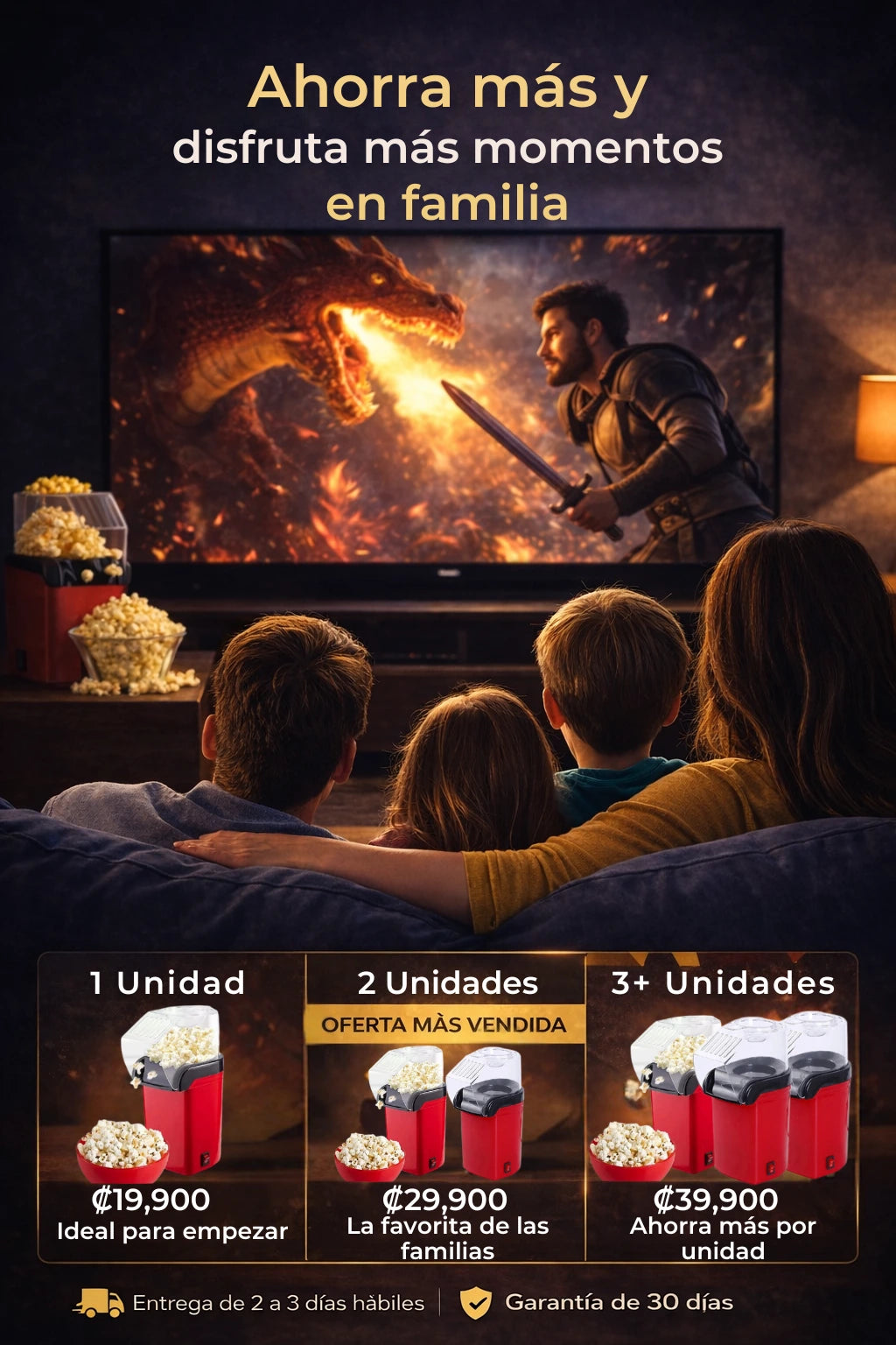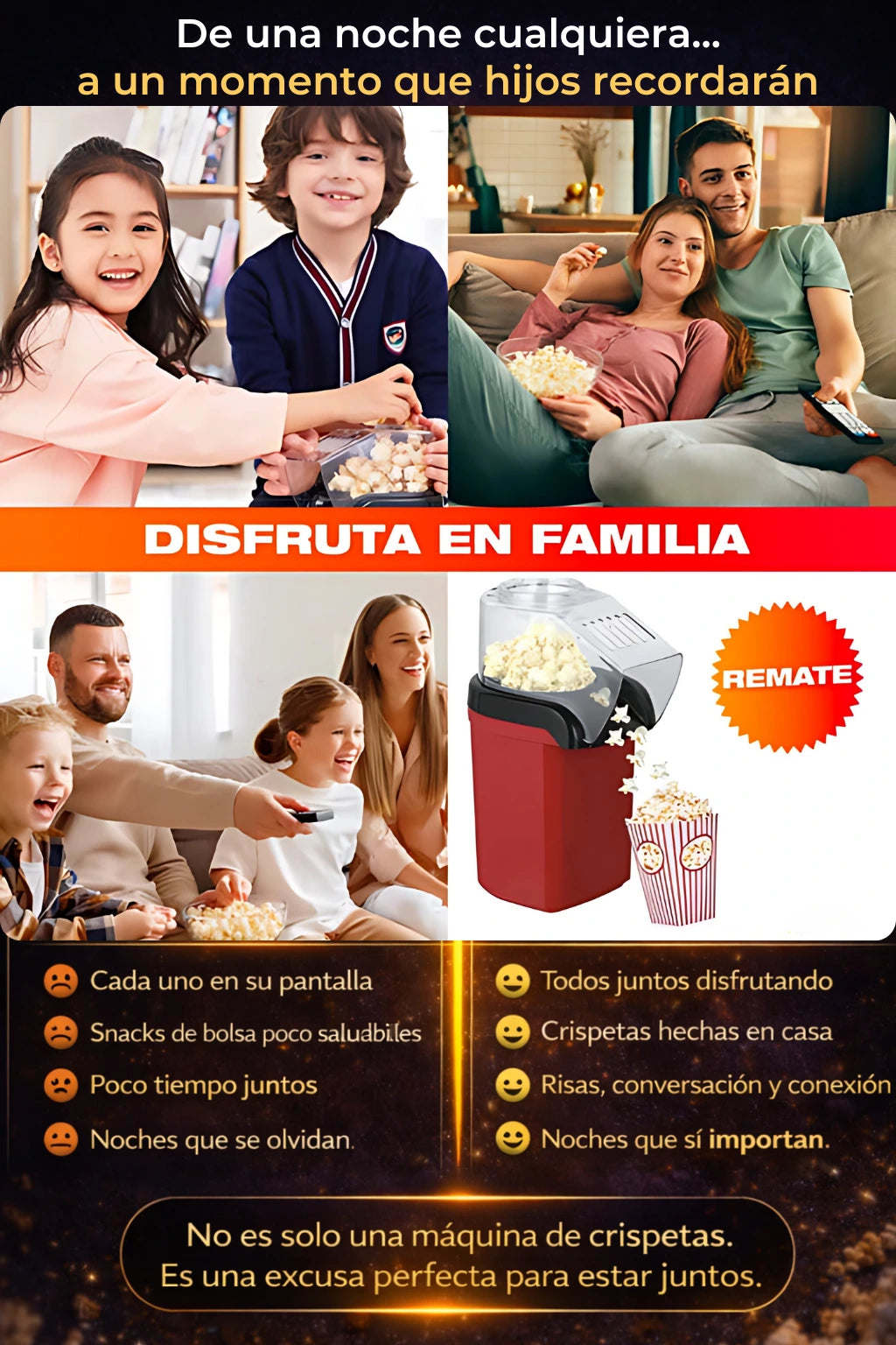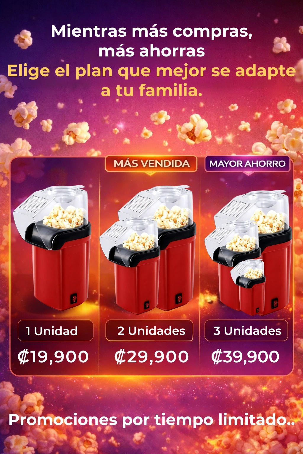 - Preparación rápida: palomitas listas en solo 3 minutos.