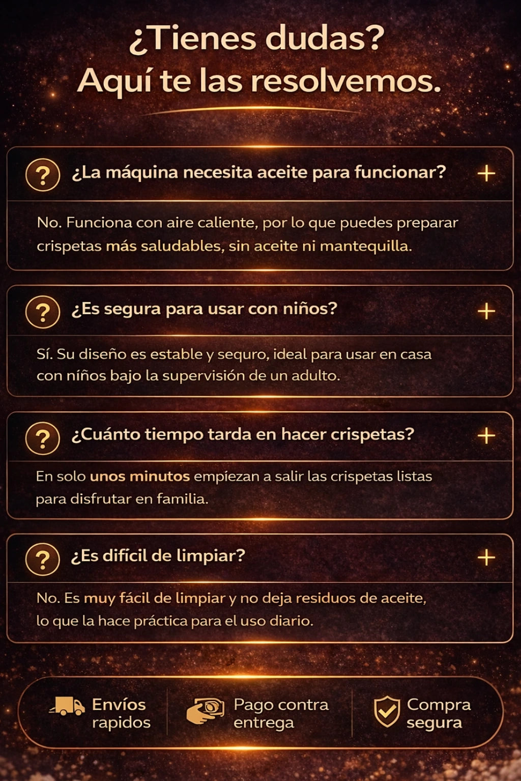 - Sin complicaciones ni líos de aceite.