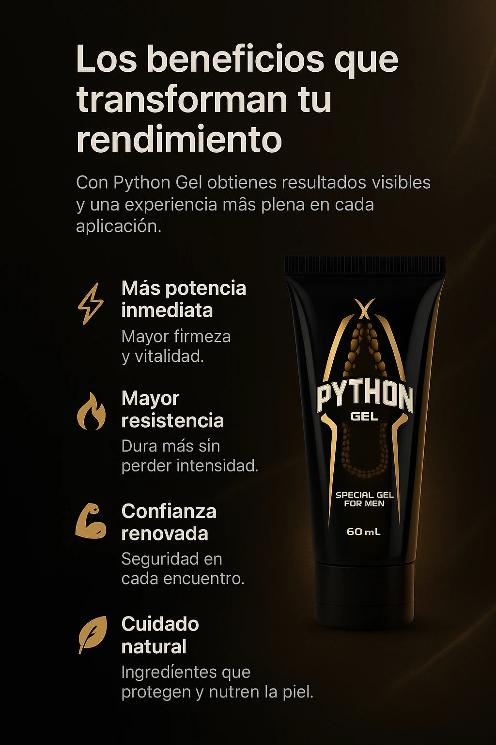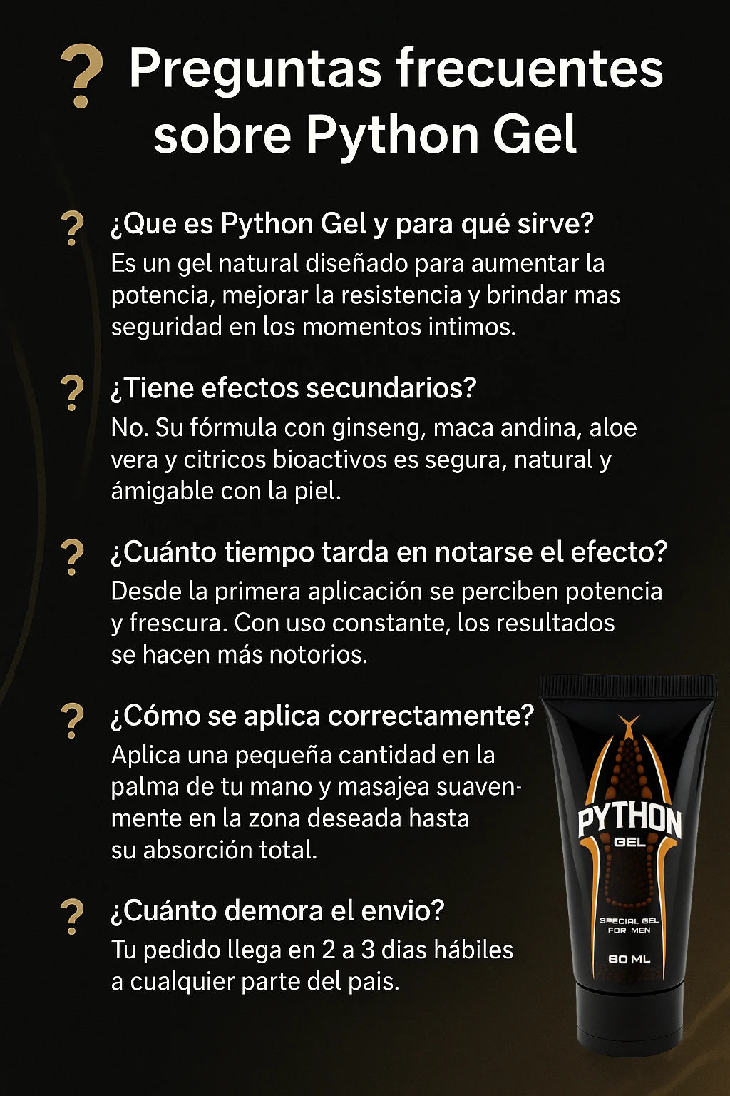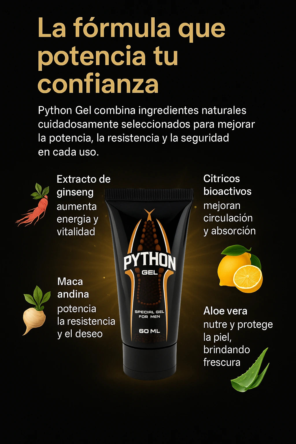 ⚡ No esperes más: ordena hoy PYTHON GEL y empieza a disfrutar de una vida íntima llena de confianza, potencia y control.