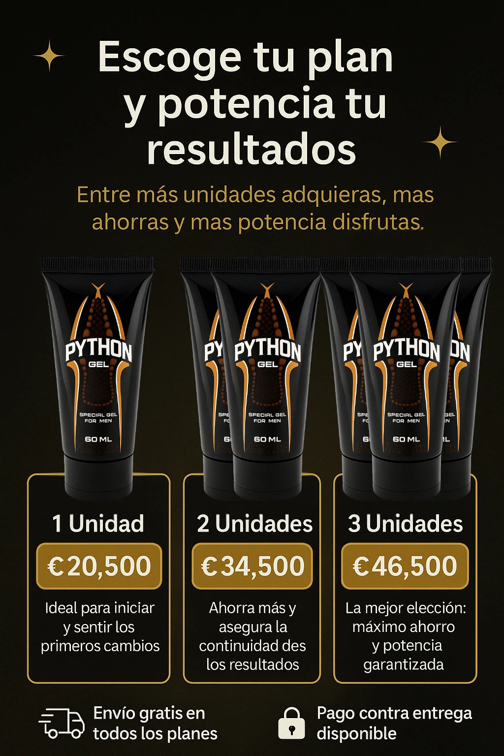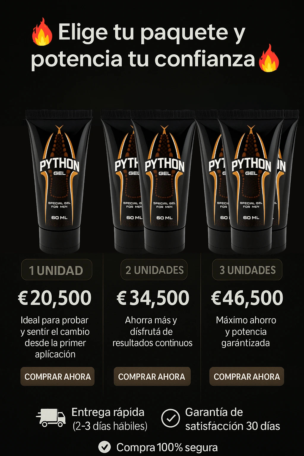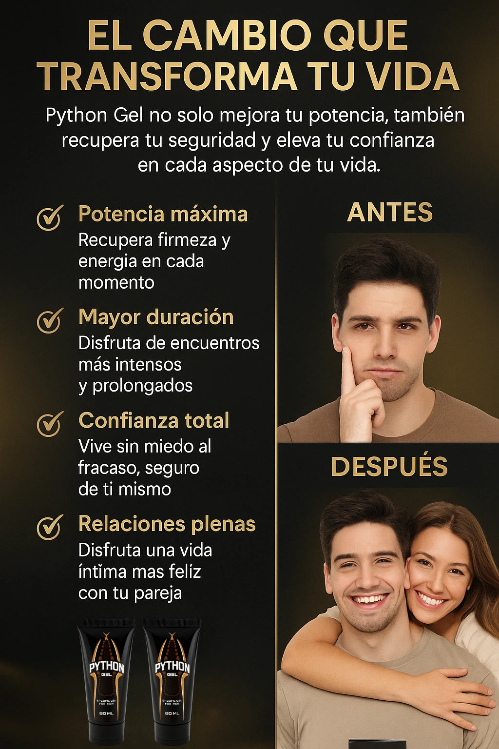 ⚡ No esperes más: ordena hoy PYTHON GEL y empieza a disfrutar de una vida íntima llena de confianza, potencia y control.